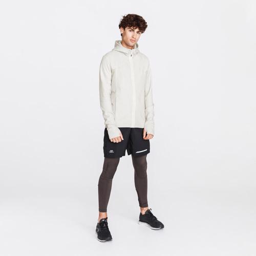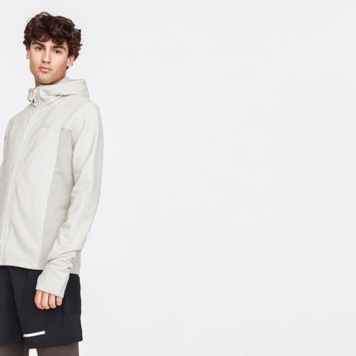 Combinatie van synthetische vezels en vezels op natuurlijke basis We hebben gekozen voor een hybridestof om je te beschermen tegen de kou: een combinatie van vezels op natuurlijke basis om de transpiratie te absorberen, en synthetische vezels om ze af te voeren. Lyocell is een vezel op natuurlijke basis, de grondstof ervoor is houtpulp. Die vezels zorgen er ook voor dat de stof heel zacht aanvoelt. Een jack dat je warm houdt en tegelijk de transpiratie afvoert Als je gaat hardlopen krijg je het warm en transpireer je, zelfs in de winter. Na een paar minuten rennen kan je het dan te warm krijgen, ook al is het koud buiten. Om dat te vermijden, zorgden we voor verluchting door onder de armen en opzij een opengewerkte stof te integreren. Zo kan de lucht vlot circuleren en wordt overtollige lichaamswarmte afgevoerd tijdens al je runs. Duimopeningen en capuchon voor een comfortabel gevoel wanneer je buitenkomt In de winter heb je het vaak de eerste kilometer het koudst. Je stapt je warme huis uit om de kou in te duiken, terwijl je lichaam meestal nog niet op temperatuur is. Ons hardloopjack Run Warm+ is voorzien van handige duimopeningen om je handen warm te houden en bovendien kan je de capuchon opzetten om warmteverlies via het hoofd te beperken. Zodra je het warm genoeg hebt, kan je je duimen uit de openingen halen en de capuchon afzetten. Recht model We hebben gekozen voor een recht model omdat dat je een goede bewegingsvrijheid biedt om te rennen en tegelijk niet omhoog kruipt. Garantie 2 jaar